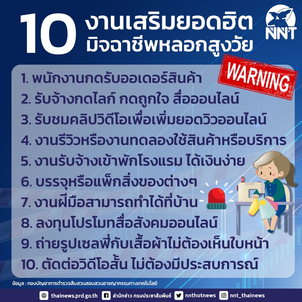 กองบัญชาการตำรวจสืบสวนสอบสวนอาชญากรรมทางเทคโนโลยี เตือน 10 งานเสริม มิจฉาชีพหลอกลวงประชาชน