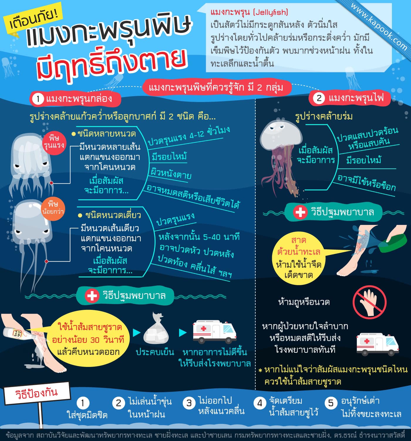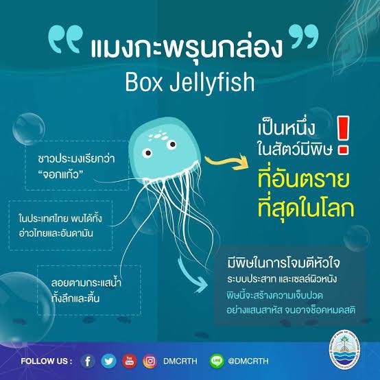 กรมทรัพยากรทางทะเลและชายฝั่ง เตือนภัยระวังการสัมผัสแมงกะพรุนกล่อง ขณะลงเล่นน้ำ