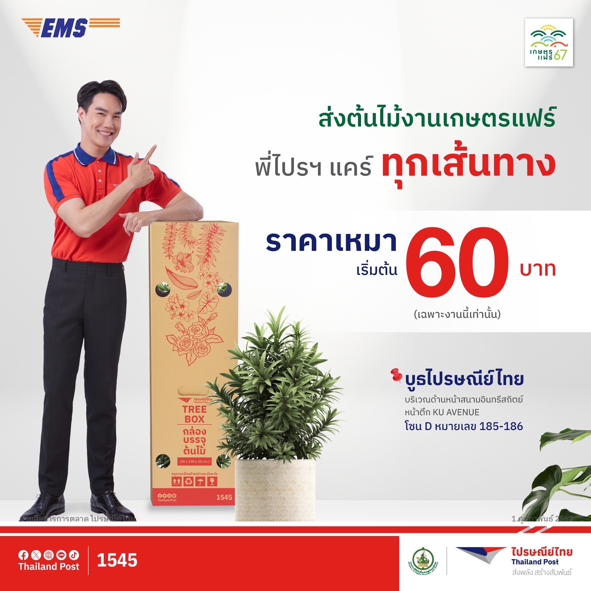 ไปรษณีย์ไทย ชวนช้อปงานเกษตรแฟร์ ไม่ต้องหิ้วกลับ ส่งด่วน EMS ราคาเหมา เริ่มต้น 60 บาท
