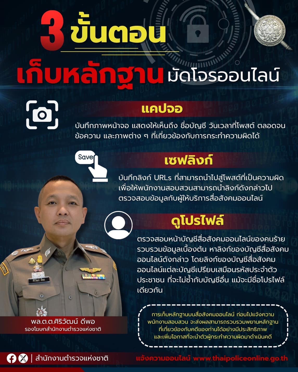 สำนักงานตำรวจแห่งชาติ แนะนำ 3 ขั้นตอนในการเก็บหลักฐานบนสื่อสังคมออนไลน์ ก่อนไปแจ้งความพนักงานสอบสวน