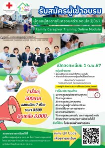 ศูนย์ฝึกอบรมผู้ดูแลผู้สูงอายุ ฝ่ายการพยาบาล โรงพยาบาลจุฬาลงกรณ์ เปิดอบรมหลักสูตรผู้ดูแลผู้สูงอายุในครอบครัว (ออนไลน์) ปี 2567 Family Caregiver Training Online Module สำหรับประชาชนทั่วไปที่สนใจ เพื่อเพิ่มทักษะและความรู้ความเข้าใจในการดูแลผู้สูงอายุได้อย่างถูกวิธี