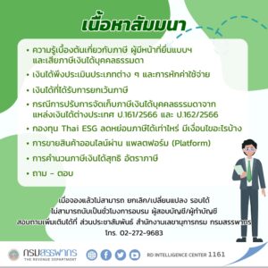 กรมสรรพากร ขอเชิญร่วมสัมมนา เรื่อง “ตัวมัมตัวแม่ภาษีเงินได้บุคคลธรรมดา” ฟรีไม่เสียค่าใช้จ่าย