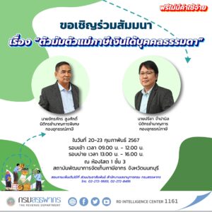 กรมสรรพากร ขอเชิญร่วมสัมมนา เรื่อง “ตัวมัมตัวแม่ภาษีเงินได้บุคคลธรรมดา” ฟรีไม่เสียค่าใช้จ่าย ในวันที่ 20 – 23 กุมภาพันธ์ 2567