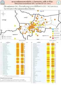 • ภาพรวมปริมาณ PM2.5 ในประเทศพบเกินค่ามาตรฐานใน 25 จังหวัด ได้แก่