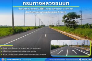 กรมทางหลวงชนบท ซ่อมบำรุงถนนสาย นย.3001 (ตอนฉะเชิงเทรา) จังหวัดฉะเชิงเทราแล้วเสร็จ