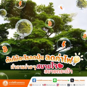 การไฟฟ้านครหลวง แนะนำเคล็ดเล็ก เคล็ดลับ ชวนปลูกต้นไม้ ลดฝุ่น ลดค่าไฟ