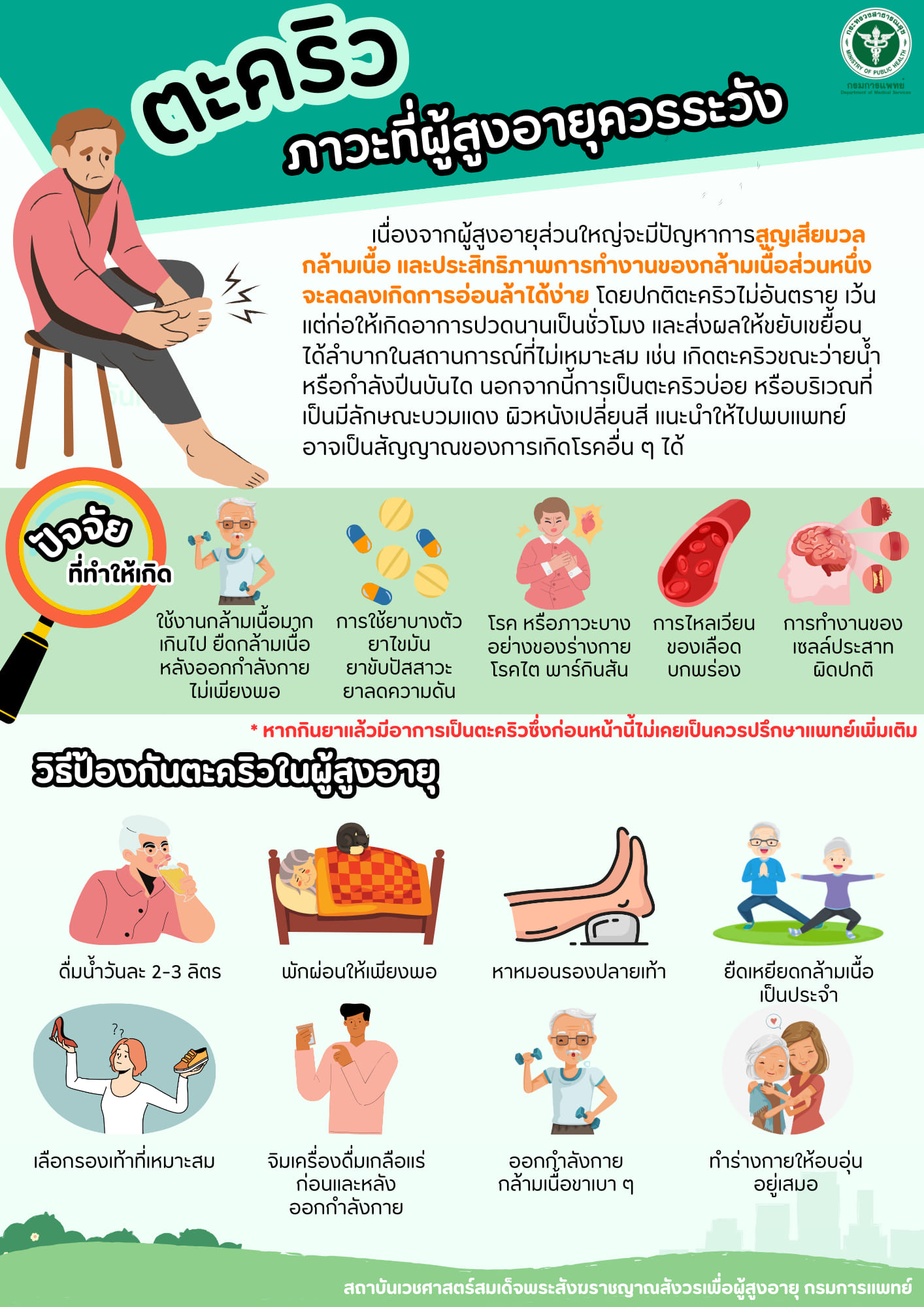 กรมการแพทย์ เตือนตะคริวภาวะที่ผู้สูงอายุควรระวัง