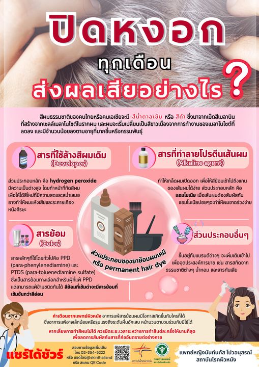 สถาบันโรคผิวหนัง กรมการแพทย์ เตือนปิดหงอกทุกเดือน ส่งผลเสียอย่างไร