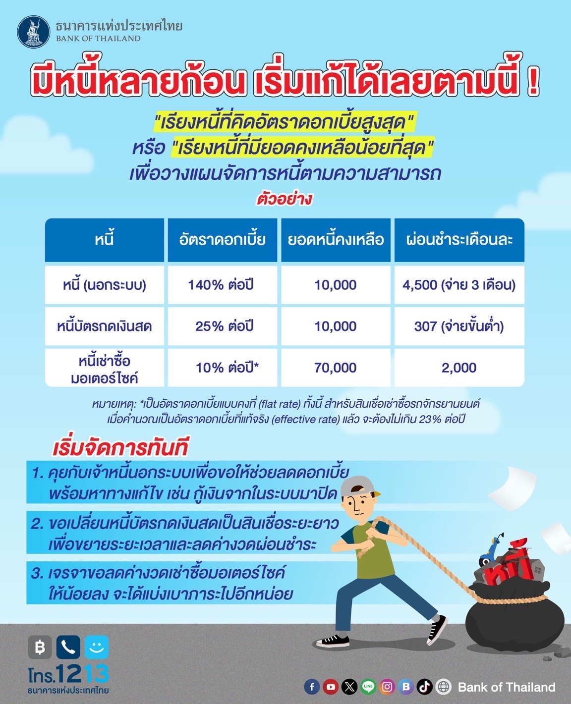 ธนาคารแห่งประเทศไทย แนะนำ วิธีจัดการ หากมีหนี้หลายก้อน ไม่รู้จะแก้ยังไง