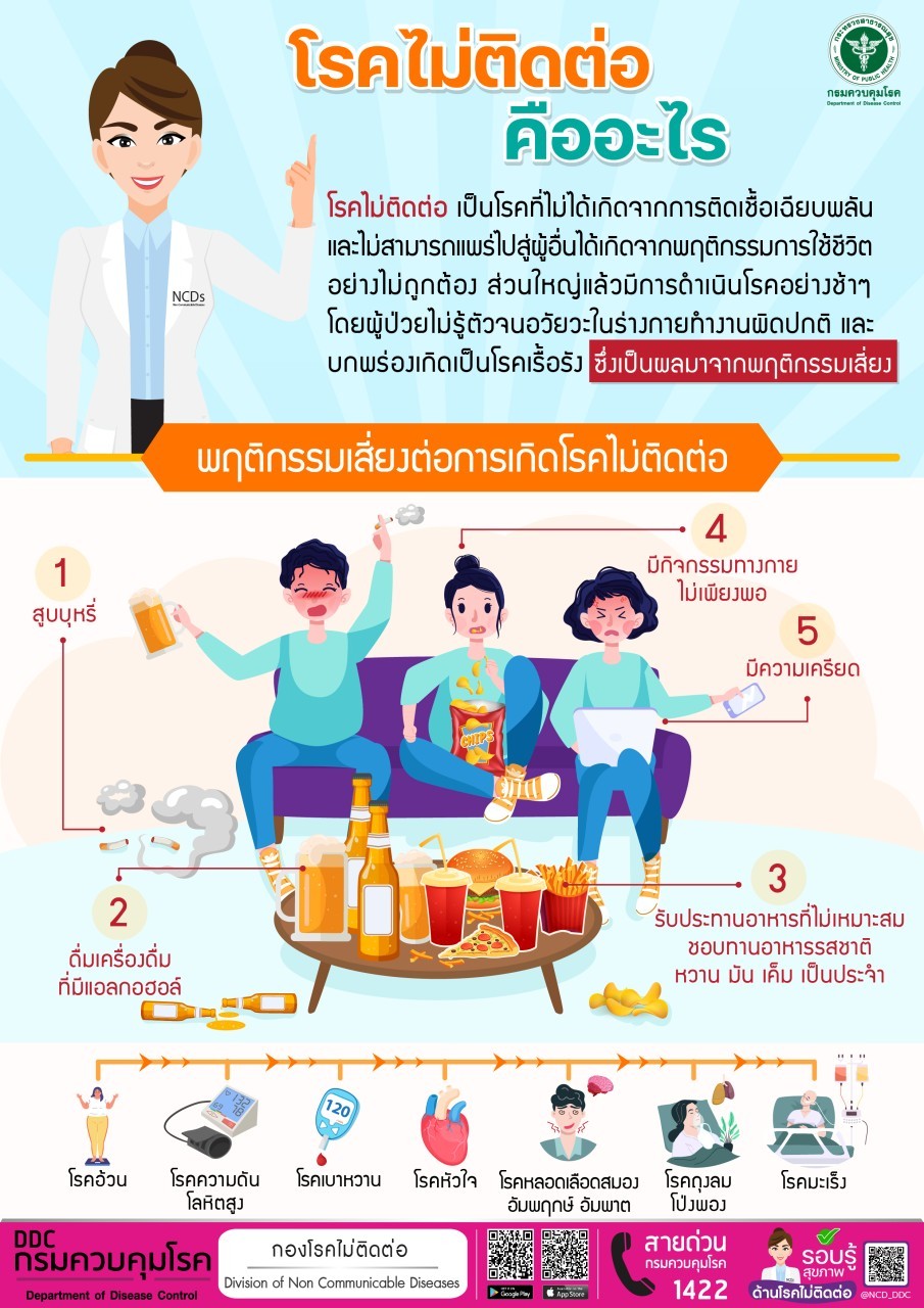 กรมควบคุมโรค แนะนำโรคไม่ติดต่อคืออะไร และพฤติกรรมเสี่ยงต่อการเกิดโรคไม่ติดต่อ