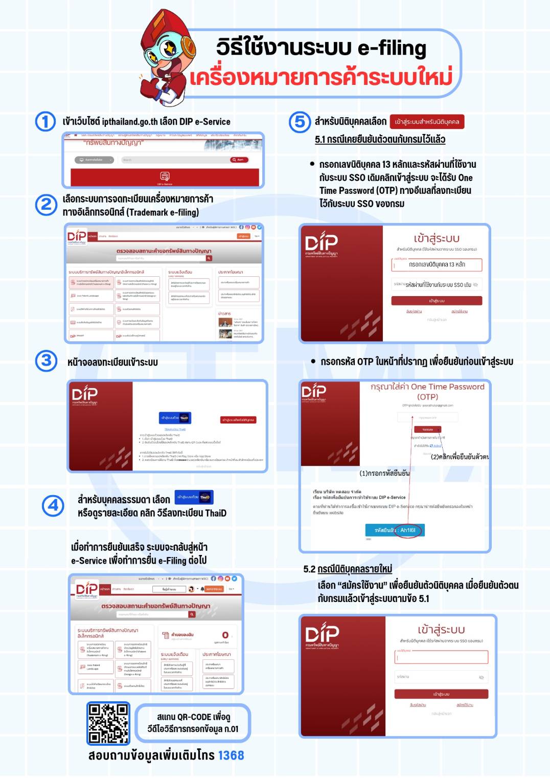 กรมทรัพย์สินทางปัญญา แนะนำวิธีใช้งานระบบ e-filing เครื่องหมายการค้าระบบใหม่
