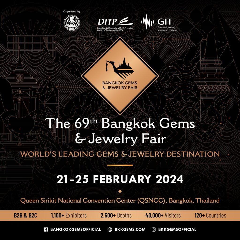 กรมส่งเสริมการค้าระหว่างประเทศ จัดงานแสดงสินค้าอัญมณีและเครื่องประดับชั้นนำของโลก (Bangkok Gems and Jewelry Fair) ครั้งที่ 69 ระหว่างวันที่ 21-25 กุมภาพันธ์ 2567 ณ ศูนย์การประชุมแห่งชาติสิริกิติ์ โดยภายในงานพบกับผู้ซื้อ ผู้นำเข้า จากทั่วโลก พร้อมชมนิทรรศการอัญมณีและเครื่องประดับ การเสวนา และกิจกรรมอื่นๆ