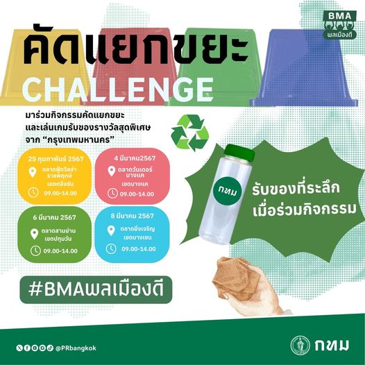 • กรุงเทพมหานคร ขอเชิญทุกท่าน ร่วมกิจกรรม “คัดแยกขยะ Challenge”