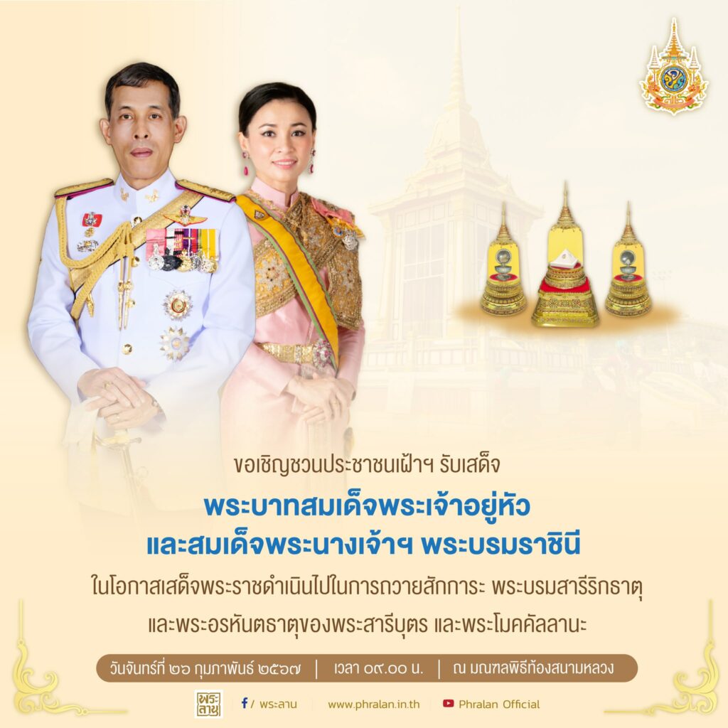 ขอเชิญชวนประชาชนเฝ้าฯ รับเสด็จ พระบาทสมเด็จพระเจ้าอยู่หัว และสมเด็จพระนางเจ้าฯ พระบรมราชินี