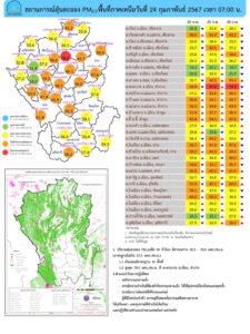 - ภาพรวมปริมาณ PM2.5 ในประเทศพบเกินค่ามาตรฐานใน 25 จังหวัด ได้แก่