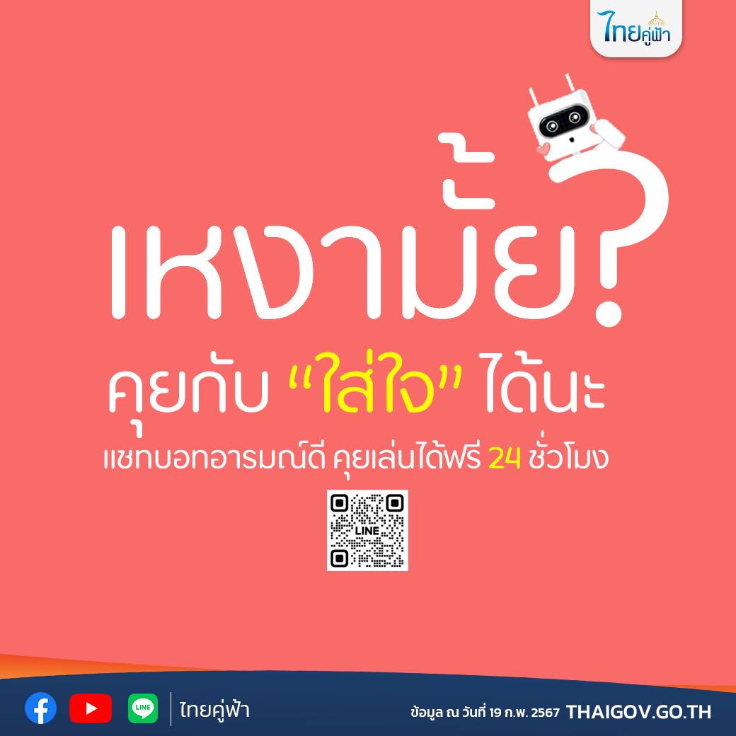 ประชาชนที่สนใจ ใช้งานได้ง่ายเพียงแอดไลน์ไอดี @psyjaibot หรือกดลิงค์นี้เพื่อเพิ่มเพื่อน https://shorturl.at/fjUY9 หรือสแกน qr code ในรูป คุยได้ทุกเรื่อง ตลอด 24 ชั่วโมง