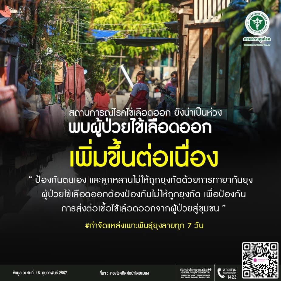 กรมควบคุมโรค กระทรวงสาธารณสุข เตือนสถานการณ์โรคไข้เลือดออก ยังน่าเป็นห่วง