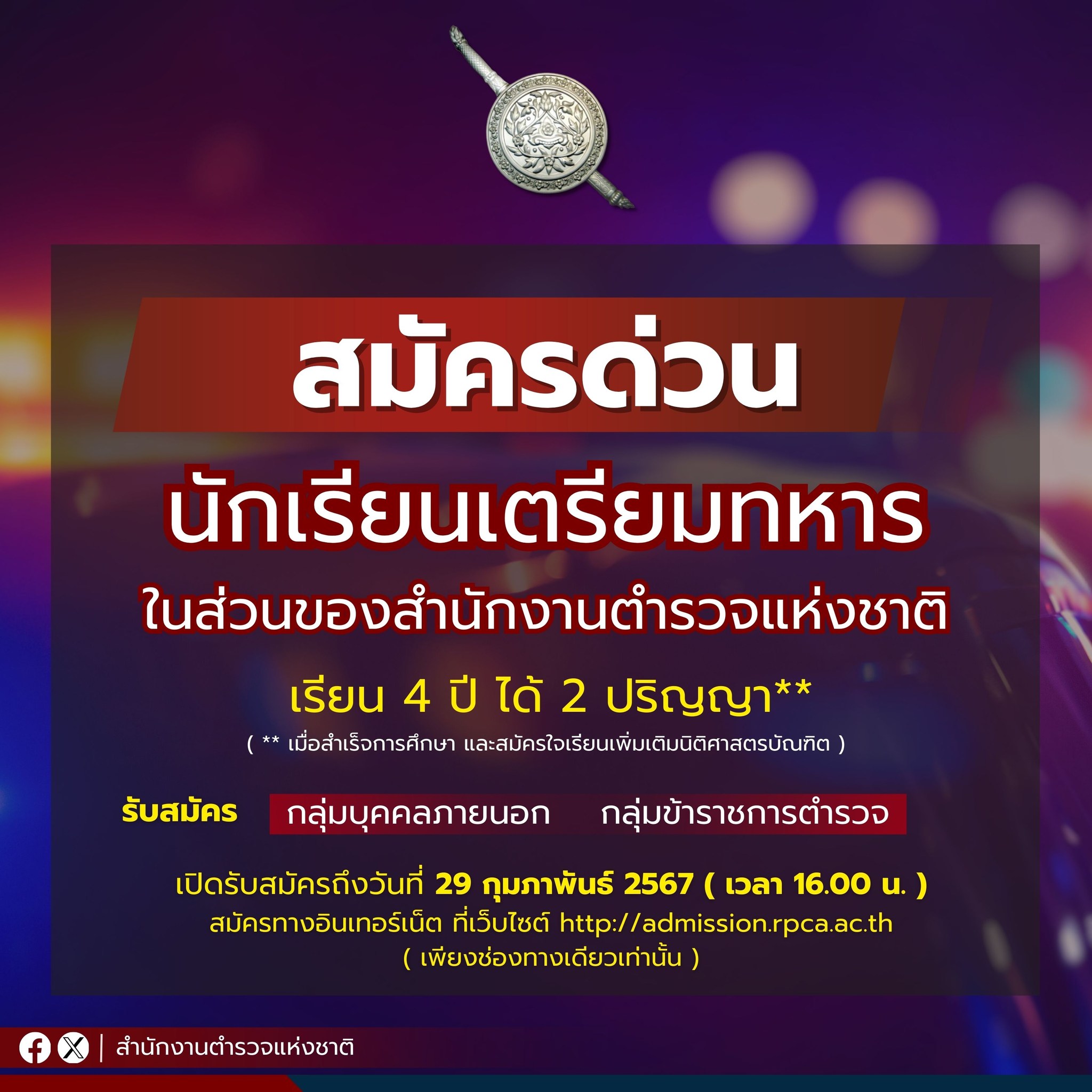 สำนักงานตำรวจแห่งชาติ เปิดรับนักเรียนนายร้อยตำรวจเข้าเป็นนักเรียนเตรียมทหาร ในส่วนของสำนักงานตำรวจแห่งชาติ