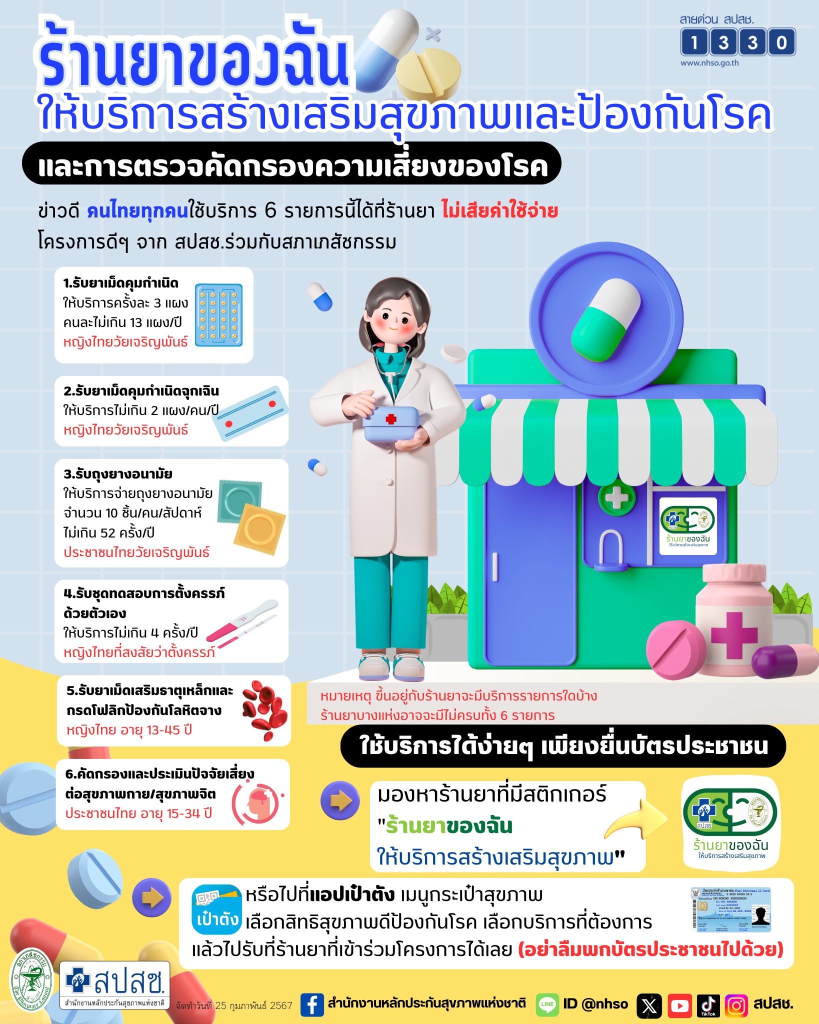 สำนักงานหลักประกันสุขภาพแห่งชาติ แนะนำใช้บริการ 6 รายการได้ที่ร้านยา ไม่เสียค่าใช้จ่าย