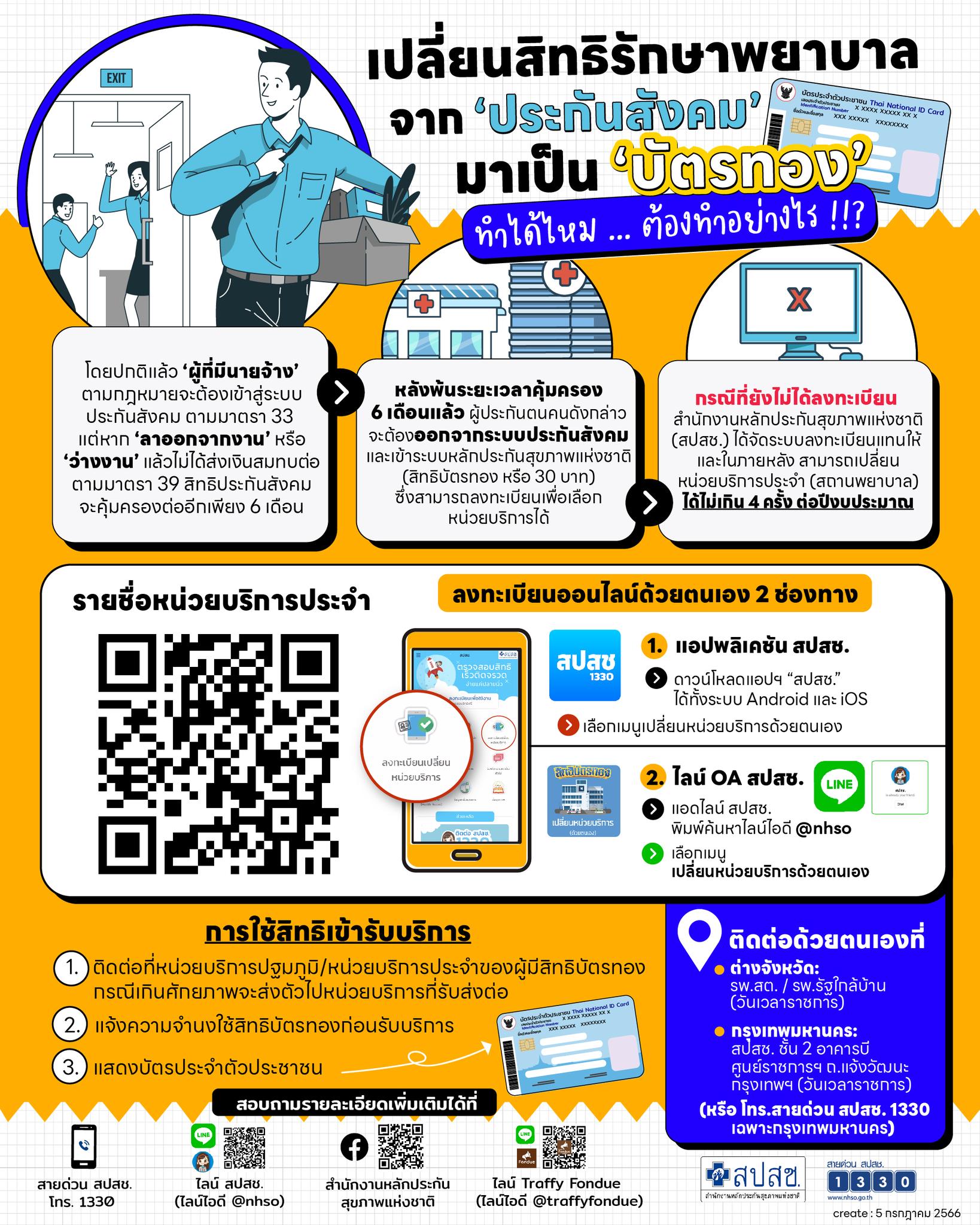 สำนักงานหลักประกันสุขภาพแห่งชาติ แนะนำเปลี่ยนสิทธิรักษาพยาบาลจากประกันสังคมมาเป็นสิทธิบัตรทองหรือบัตร 30 บาท ต้องทำอย่างไร