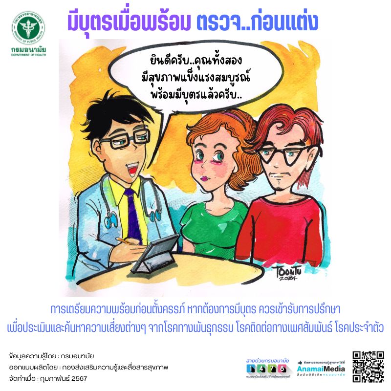 กรมอนามัย กระทรวงสาธารณสุข แนะนำ มีบุตรเมื่อพร้อม ตรวจก่อนแต่ง