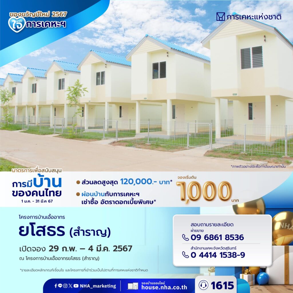 การเคหะแห่งชาติ สนับสนุนการมีบ้านของคนไทย เปิดจองโครงการบ้านเอื้ออาทรยโสธร (สำราญ)