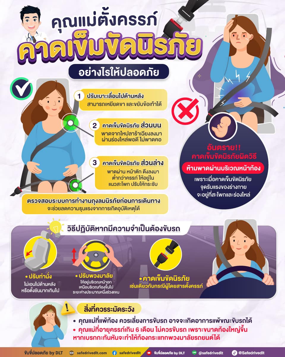 กรมการขนส่งทางบก แนะนำคุณแม่ตั้งครรภ์ คาดเข็มขัดนิรภัยอย่างไรให้ปลอดภัย