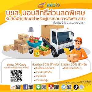 บริษัท ขนส่ง จำกัด มอบส่วนลดสุดพิเศษ สำหรับบริการรับ – ส่งพัสดุภัณฑ์ ให้กับผู้ประกอบการสังกัด สสว. ตั้งแต่บัดนี้ – 31 ธันวาคม 2567