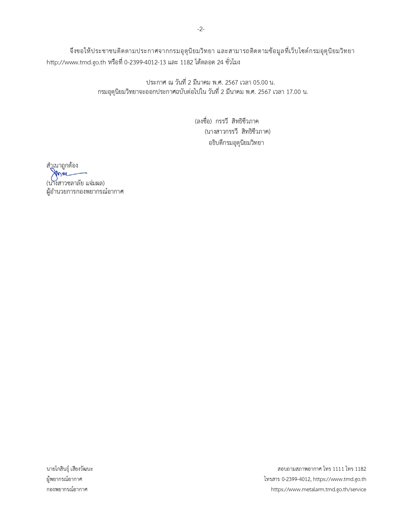 ประกาศ ณ วันที่ 2 มีนาคม พ.ศ. 2567 เวลา 05.00 น.