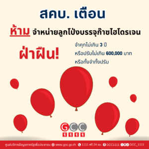 สคบ. เตือนห้ามขายลูกโป่งบรรจุก๊าซไฮโดรเจน ฝ่าฝืนจำคุก 3 ปี หรือปรับ 600,000 บาท