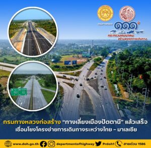 กรมทางหลวง ก่อสร้างทางเลี่ยงเมืองปัตตานีแล้วเสร็จเชื่อมโยงโครงข่ายการเดินทางระหว่างไทย-มาเลเซีย