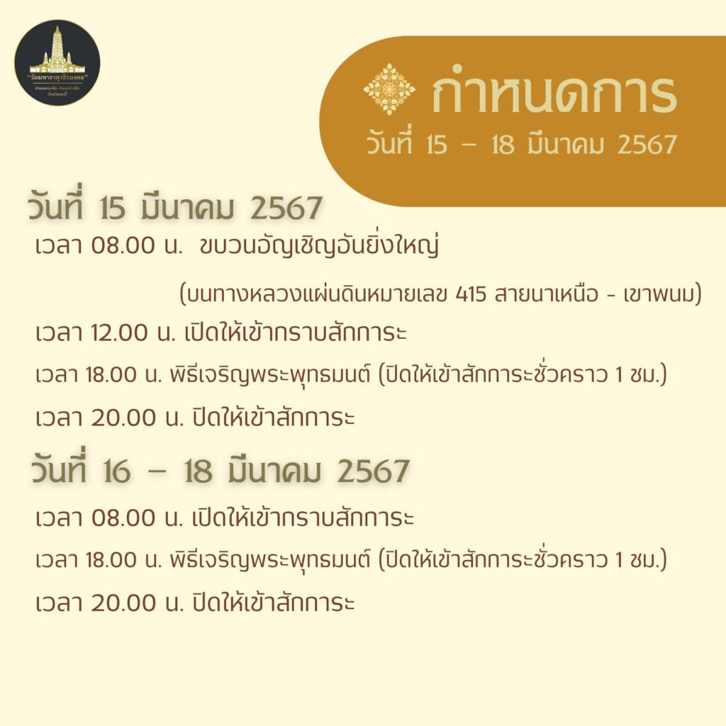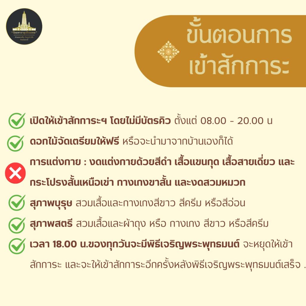 - เปิดให้เข้าสักการะได้โดยไม่ต้องลงทะเบียน ตามกำหนดการดังนี้