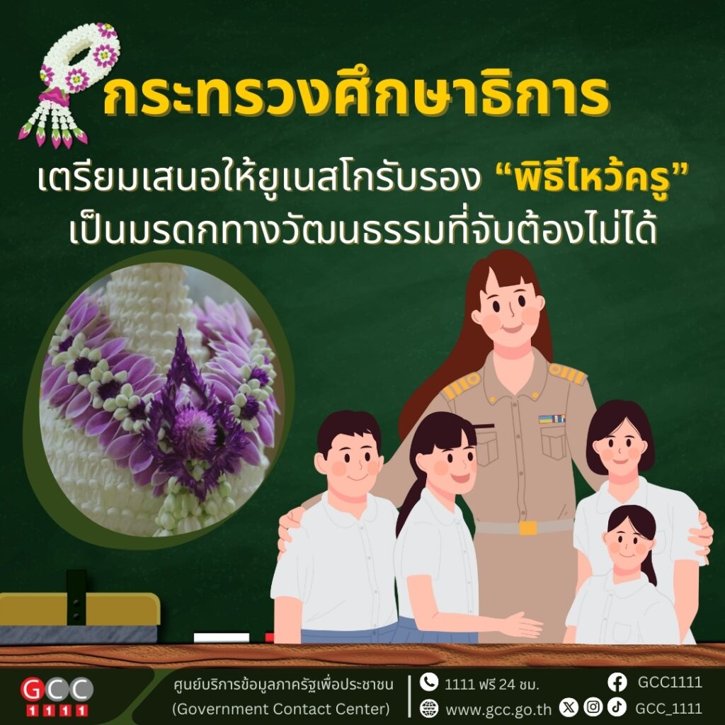 กระทรวงศึกษาธิการ เตรียมเสนอให้ยูเนสโกรับรอง “พิธีไหว้ครู” เป็นมรดกทางวัฒนธรรมที่จับต้องไม่ได้