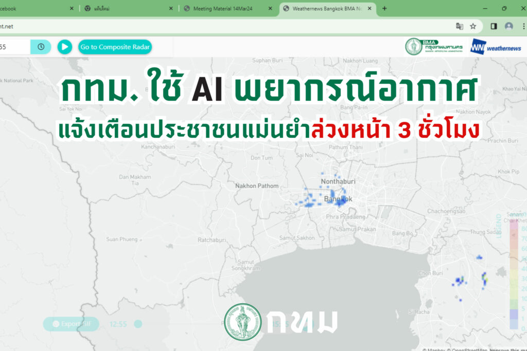 - ในการเปิดใช้ระบบ AI Nowcast สำหรับการพยากรณ์ฝนล่วงหน้าในพื้นที่กรุงเทพมหานคร