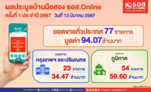 ธนาคารอาคารสงเคราะห์ เปิดเผยผลการจัดงานประมูลขายบ้านมือสองออนไลน์ ครั้งที่ 1/2567