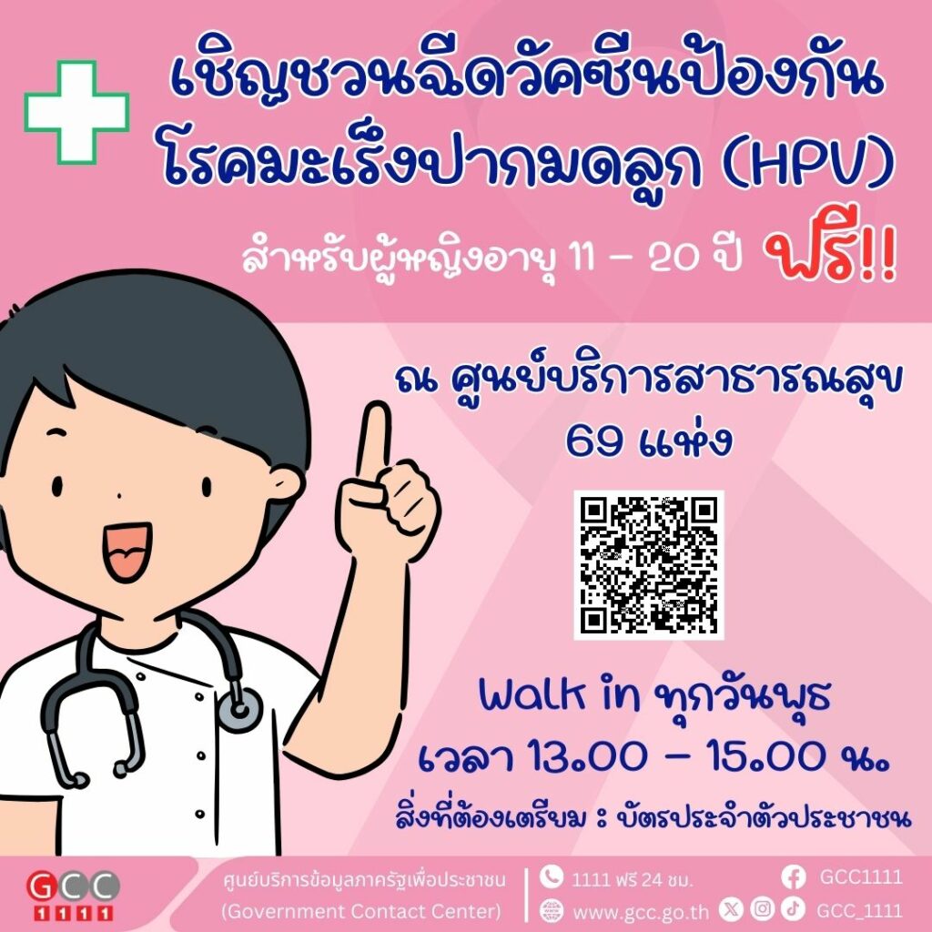 สำนักอนามัย เชิญชวน Walk in ฉีดวัคซีนป้องกันโรคมะเร็งปากมดลูก (HPV) ฟรี