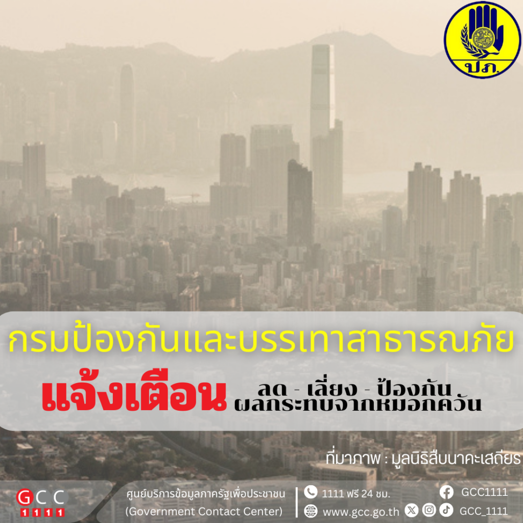 กรมป้องกันและบรรเทาสาธารณภัย แจ้งเตือนประชาชน ลด – เลี่ยง – ป้องกัน ผลกระทบจากหมอกควัน