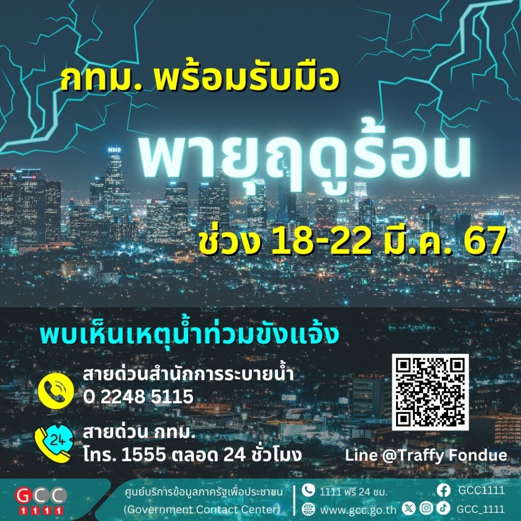 กทม. เตรียมพร้อมรับมือและช่วยเหลือประชาชนช่วงพายุฤดูร้อน วันที่ 18 – 22 มี.ค. 67