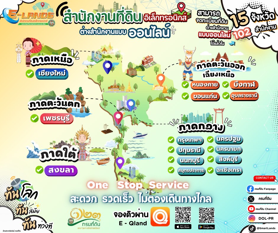 กรมที่ดิน เปิดให้บริการจดทะเบียนที่ดินต่างสำนักงานแบบออนไลน์ 15 จังหวัด 102 สำนักงานที่ดิน