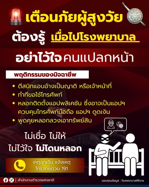 สำนักงานตำรวจแห่งชาติ เตือนภัยผู้สูงวัยเมื่อไปในที่สาธารณะระวังภัยจาก “คนแปลกหน้า”