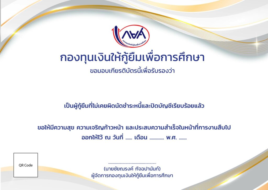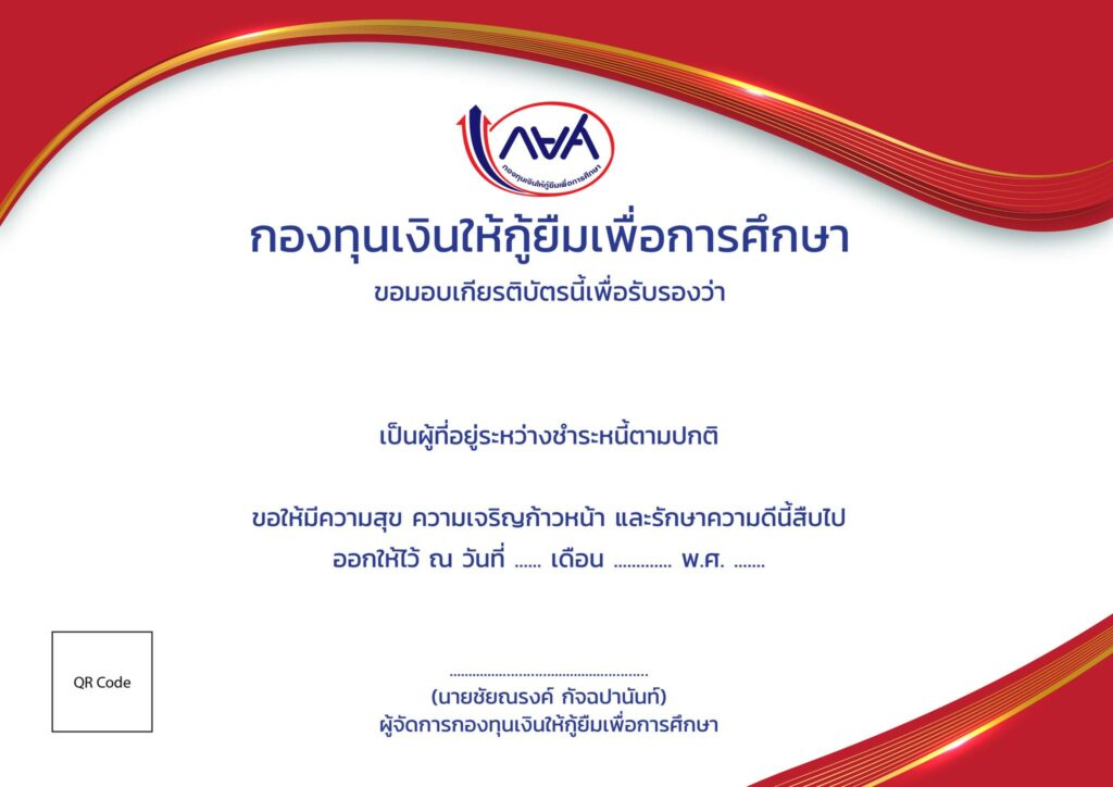 ทั้งนี้ กองทุนฯ จึงขอให้ผู้กู้ยืมเงินที่มีคุณสมบัติดังกล่าวดาวน์โหลดเกียรติบัตรได้ที่เว็บไซต์ www.studentloan.or.th ตั้งแต่บัดนี้เป็นต้นไป