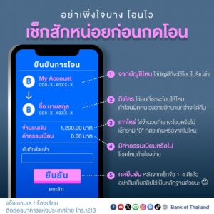 ธนาคารแห่งประเทศไทย เตือนเช็กสักหน่อยก่อนกดโอน