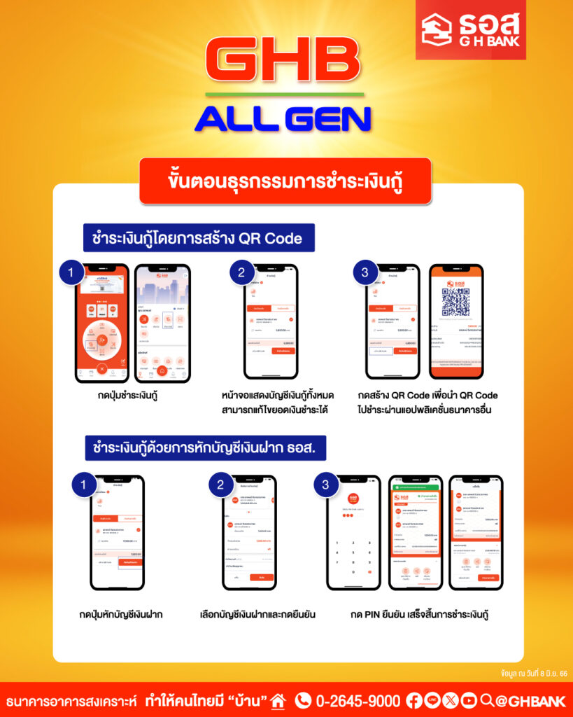ธอส. แจ้งสามารถชำระเงินกู้ ผ่าน QR Code และหักบัญชีเงินฝาก ผ่านแอป GHB ALL GEN ได้ตั้งแต่บัดนี้