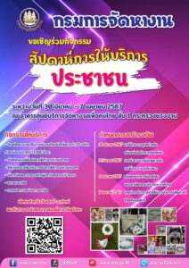 กรมการจัดหางาน ขอเชิญร่วมกิจกรรมสัปดาห์การให้บริการประชาชน ระหว่างวันที่ 30 มีนาคม – 7 เมษายน 2567