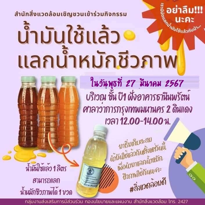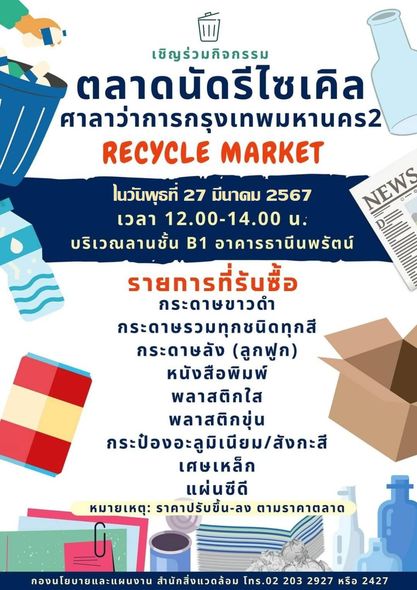 สำนักสิ่งแวดล้อม ขอเชิญชวน นำขยะรีไซเคิลมาเปลี่ยนเป็นเงินในตลาดนัดรีไซเคิล กทม.(ดินแดง)