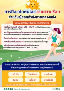 สำนักอนามัย กรุงเทพมหานคร แนะนำการป้องกันตนเองจากความร้อน สำหรับผู้ที่ออกกำลังกายกลางแจ้ง