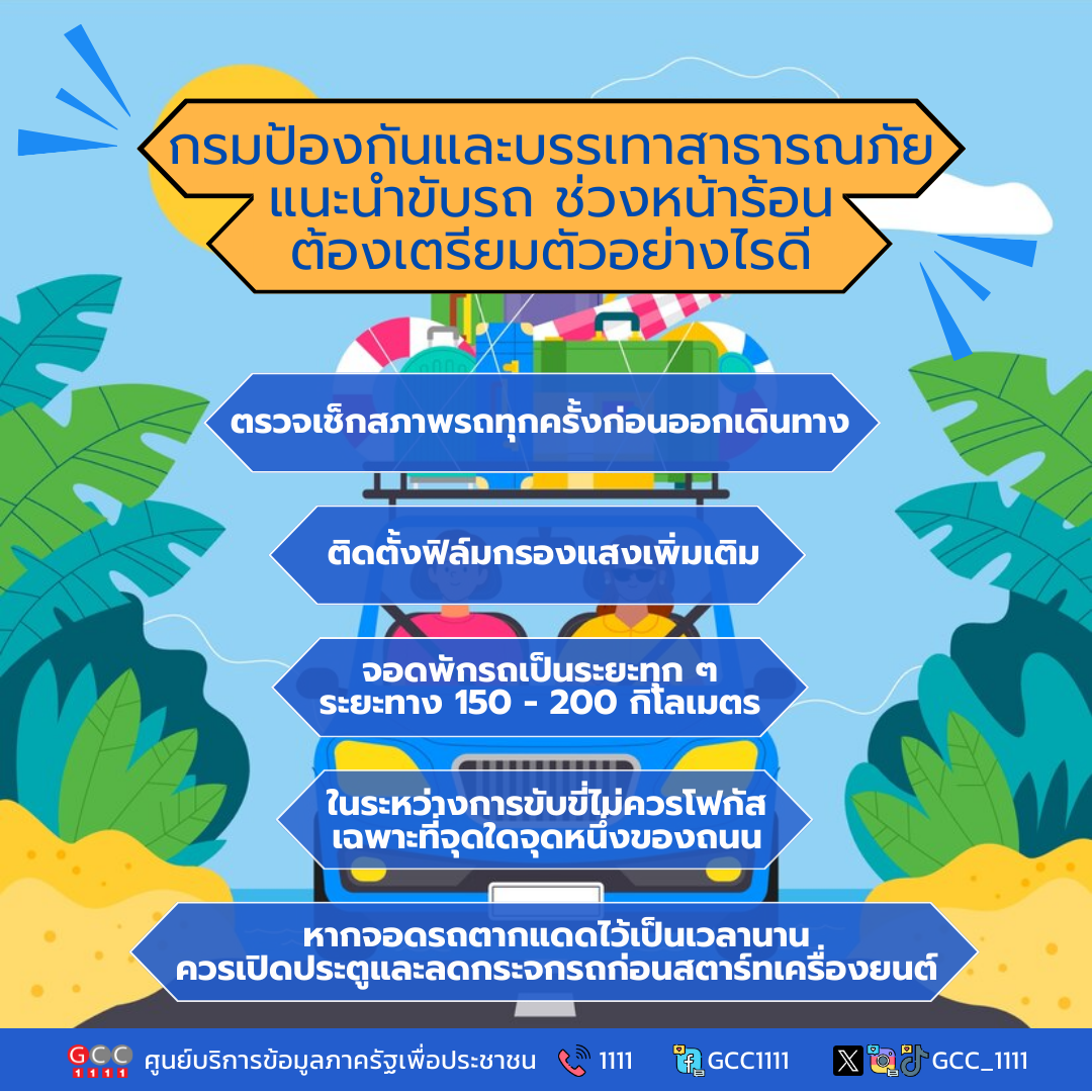กรมป้องกันและบรรเทาสาธารณภัย แนะนำขับรถ ช่วงหน้าร้อน