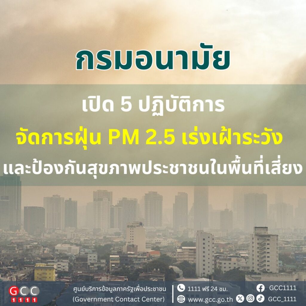 กรมอนามัย เปิด 5 ปฏิบัติการจัดการฝุ่น PM 2.5 เร่งเฝ้าระวัง และป้องกันสุขภาพประชาชนในพื้นที่เสี่ยง