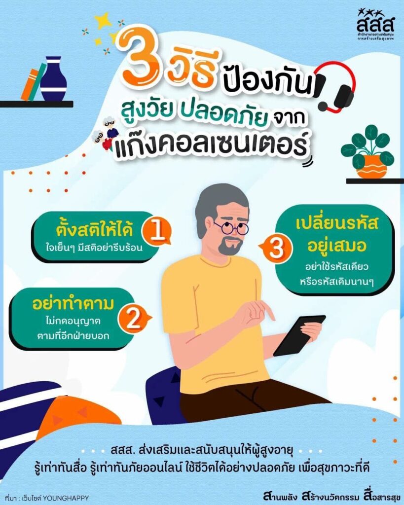 สำนักงานกองทุนสนับสนุนการสร้างเสริมสุขภาพ แนะนำ 3 วิธีป้องกันสูงวัยจากแก๊งคอลเซ็นเตอร์