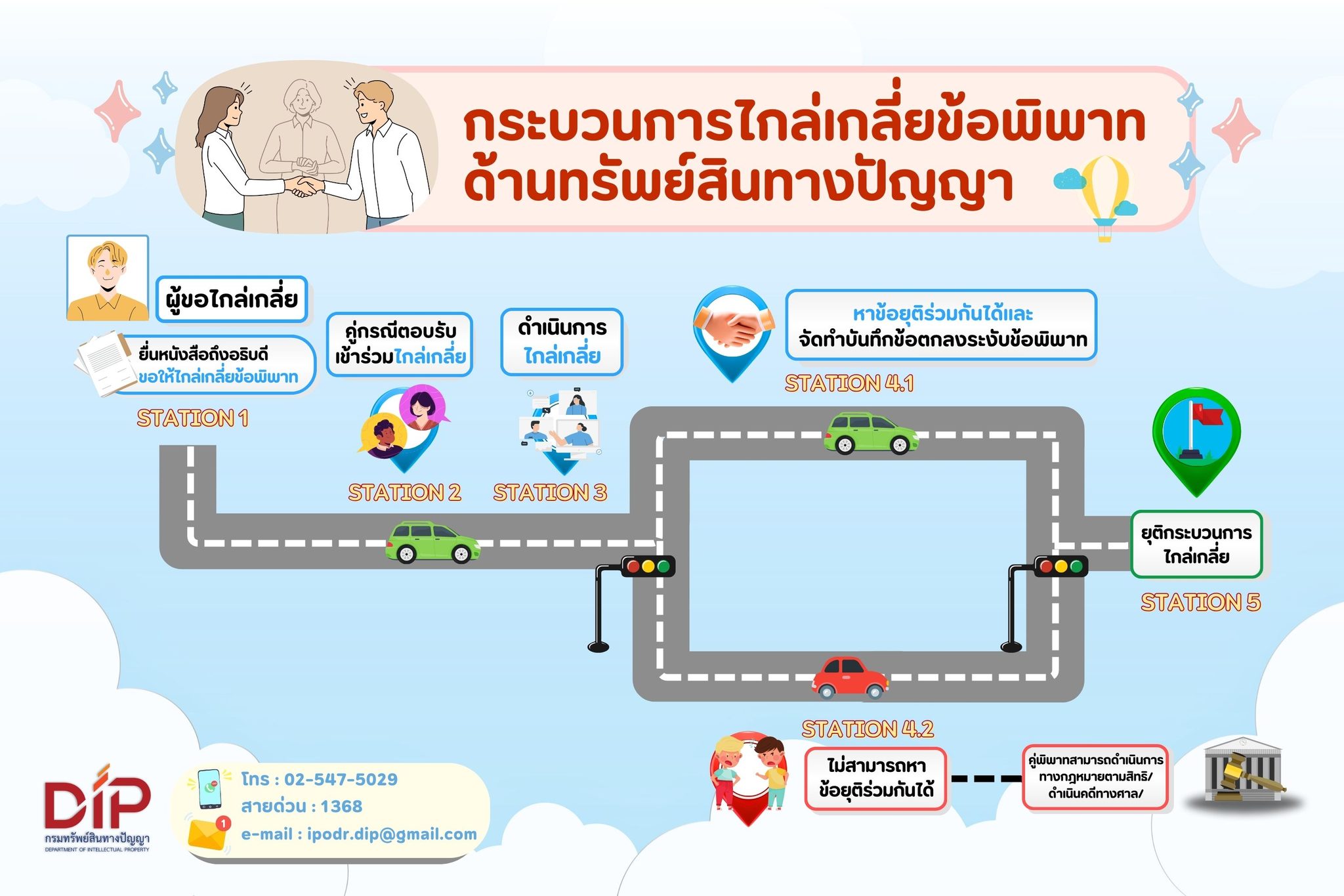 กรมทรัพย์สินทางปัญญา แจ้งขั้นตอนกระบวนการไกล่เกลี่ยข้อพิพาท ด้านทรัพย์สินทางปัญญา